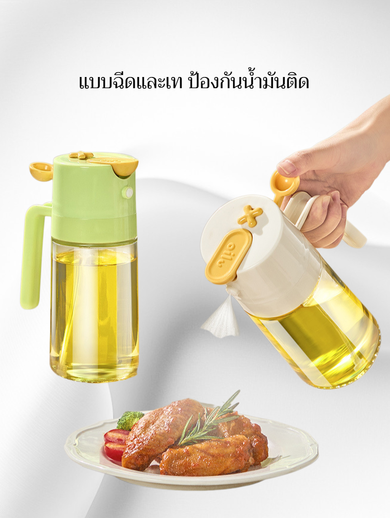 ขวดน้ำมันแก้วอเนกประสงค์ แบบฉีดและเท ป้องกันน้ำมันติด ใช้งานง่าย สะดวกต่อการควบคุมปริมาณน้ำมัน วัสดุทนทาน ทำความสะอาดง่าย เหมาะสำหรับครัวทุกแบบ
