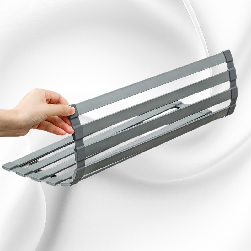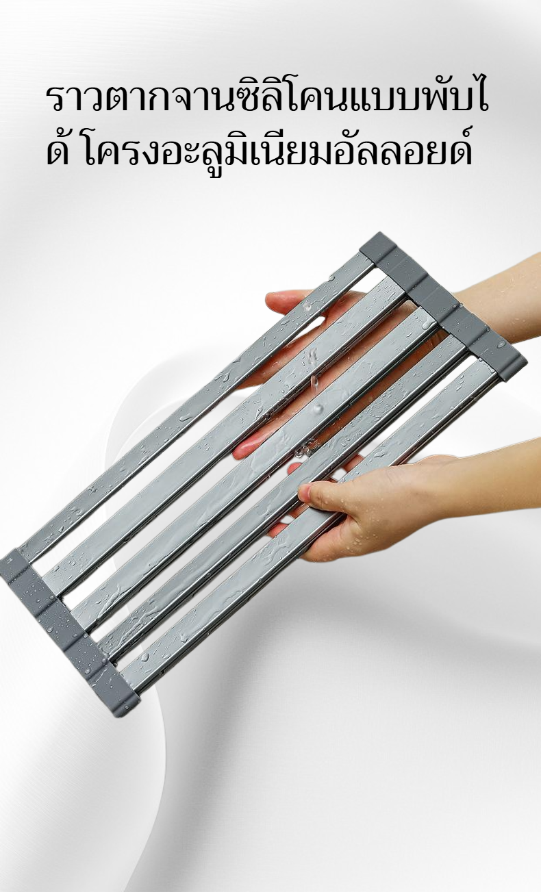 ราวตากจานซิลิโคนสำหรับซิงค์น้ำ แบบพับได้ โครงอะลูมิเนียมอัลลอยด์